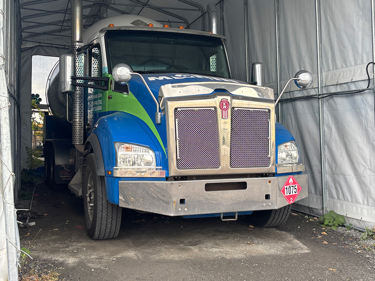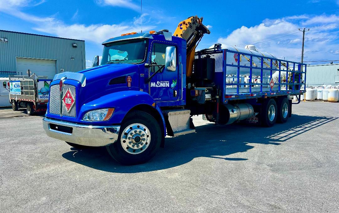 Avançons le temps à aujourd’hui. Daniel Coulombe est (presque) à la retraite. Toutefois, l’entreprise, elle, a profité et aujourd’hui, malgré qu’il aime venir aider aux opérations (tout comme sa femme, d’ailleurs…), ce sont ses fils qui mènent la barque dont Maxime qui s’occupe de l’administration de la compagnie alors que Jonathan, lui, en gère les opérations. Et cela veut dire s’occuper des véhicules qui, vous vous en doutez, ne sont plus les plus petits véhicules du passé (qui étaient alors surtout des Ford F et des International de poids moyen). En 2025, Gaz Propane Monin utilise six camions citernes Kenworth (le plus ancien qui accuse plus de 400 000 km est de 2018 et le plus récent date de 2023) et un imposant camion- grue aussi de marque Kenworth. Ajoutez à cela une plus « petite » citerne montée sur un châssis de Ford F-550 qui sert à livrer du gaz dans des endroits serrés comme dans les ruelles.
